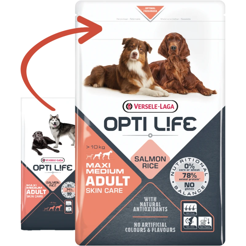 Opti Adult Skin Care Medium & Maxi est une formule parfaitement équilibrée pour les races moyennes et les grandes races à base de saumon et de riz qui donnera à votre chien une peau et un pelage rayonnants de santé.