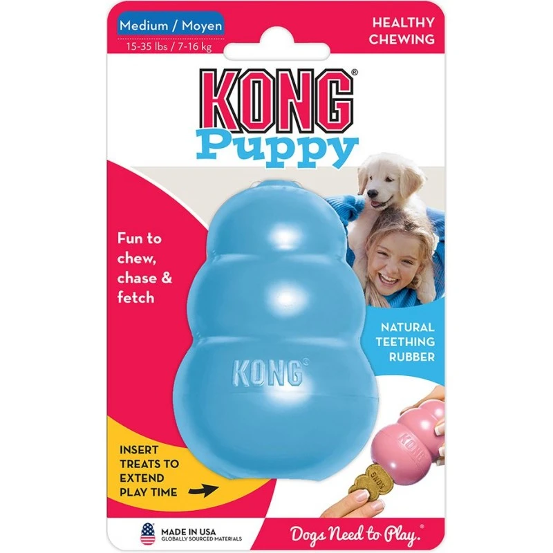 Le jouet KONG Puppy pour chiots a été élaboré spécialement pour les dents de lait des chiots. La formule unique de son caoutchouc 100 % naturel est la plus souple de la gamme de jouets en caoutchouc KONG. Conçu pour s’adapter aux 28 dents de lait des chiots, il aide à gérer leur mastication de façon appropriée tout en offrant une stimulation et en satisfaisant leur instinct naturel. Le rebond déconcertant est idéal pour les chiots qui veulent simplement s’amuser. Un KONG Puppy farci de friandises occupe les tout petits constamment en action tout en vous permettant de pourvoir à vos nécessités. Vous cherchez un moyen de dresser votre chien à rester dans sa niche ou son panier, ou bien vous voulez que les séances de jeu soient plus intéressantes ?