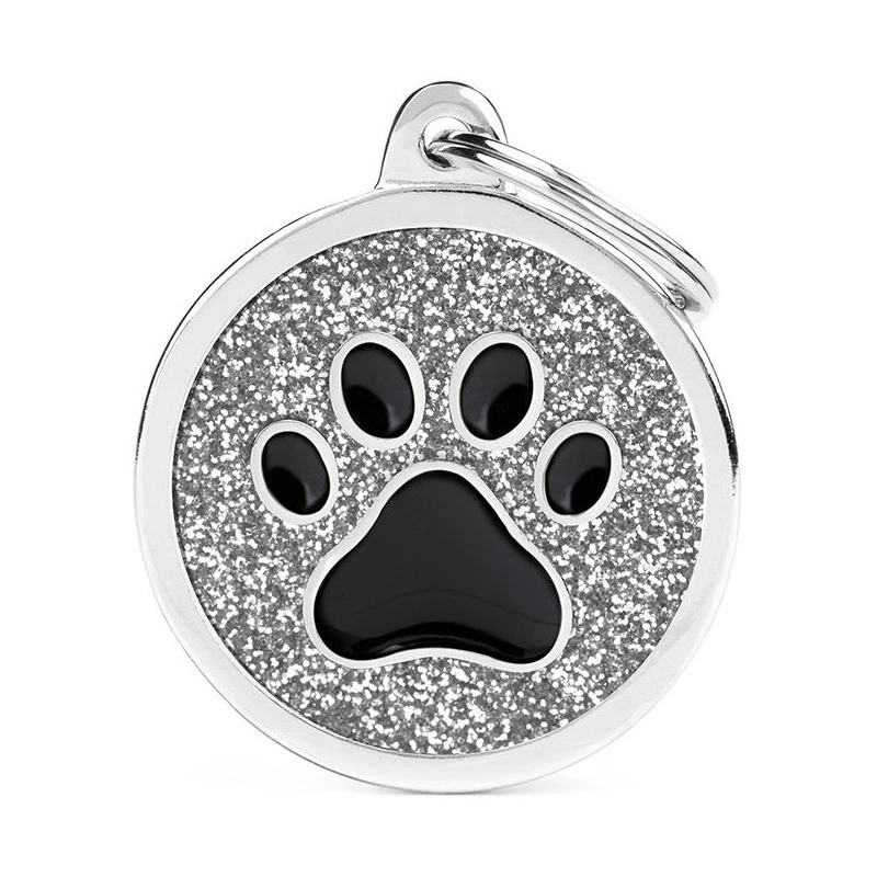 Médaille Shine Patte Grand Rond Glitter Gris/Noir
