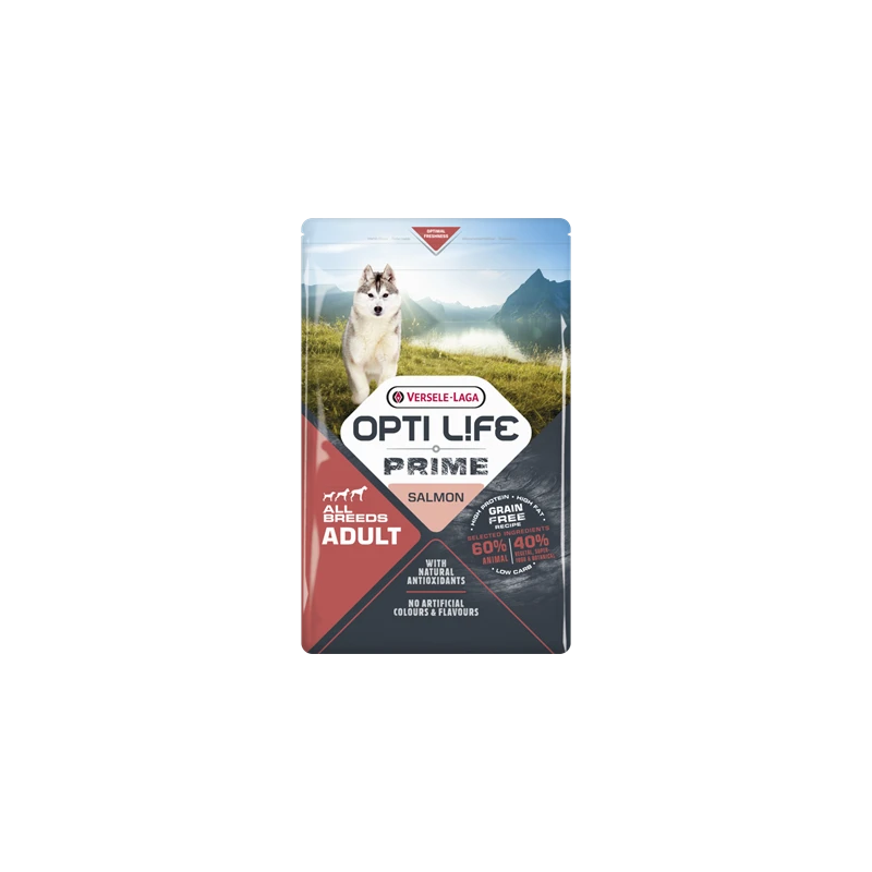 Avec Opti Life Prime Adult Salmon vous servez à votre chien un repas premium, riche, délicieux et débordant de nutriments puissants. Notre recette sans céréales est riche en protéines et en graisses, et pauvre en glucides, avec le mélange idéal d’ingrédients de la plus haute qualité, les plus savoureux et les plus naturels pour une journée pleine d’aventures.