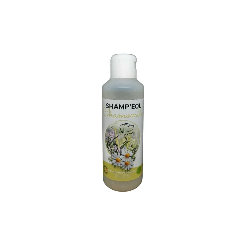 Shampoing doux permettant un nettoyage du pelage sans agression. Convient particulièrement aux animaux ayant une peau ou un pelage clair et sensible. La camomille redonne éclat et brillance au pelage.