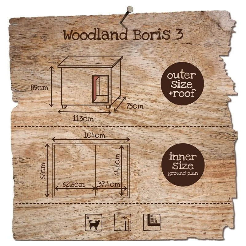 Niche Woodland classique munie d’un toit plat avec roofing pour une résistance parfaite aux intempéries. Le coupe-vent fait que la chaleur reste à l’intérieur et le froid à l’extérieur de la niche. La niche est bien finie avec une structure en acier inoxydable.